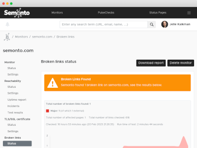 Semonto monitors your website 24/7 and immediately reports any broken links. This way, you can fix the link before anyone notices.